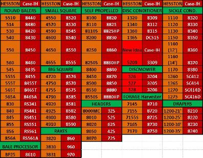 | Have you experienced supply issues from your current dealer; check with AGCO Parts as we have many items in-stock and availability to get parts for these machines. Here is a listing of the Case-IH Models and the like model of HESSTON or New Idea Model. Click on Cross Reference to Enlarge. |