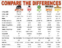Manufacturers can Change Specs at any time. These Charts are complied from the lastest specs found on the Manufacturers Websites and Publishing.