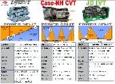 | Not all Transmissions are Created equal. Understanding the Differences or more importantly how they transmit power to the ground will make you a better educated buyer. The AGCO CVT Technology used in the Dyna-VT from Massey Ferguson was developed by sister-brand Fendt of Germany. The Dyna-VT features NO Clutch and Zero Clutch Packs for Greater Efficiency in Power Transmission and Less Maintenance. You can see in the picture to the left the Mechanical versus Hydraulic Split. The Dyna-VT always has some level of Mechanical Split versus the competition that uses Clutch Packs to create variability there are only a few places they get Mechanical Propulsion or "Sweet Spots" in their transmission designs. The DynaVT is always sweet and gets sweeter the faster your transmission speed. Thus is one of the reasons the DynaVT is "The Worlds Most Efficient Transmission" and supplying more power to the ground to get more work done. Get More, Get a DynaVT. |